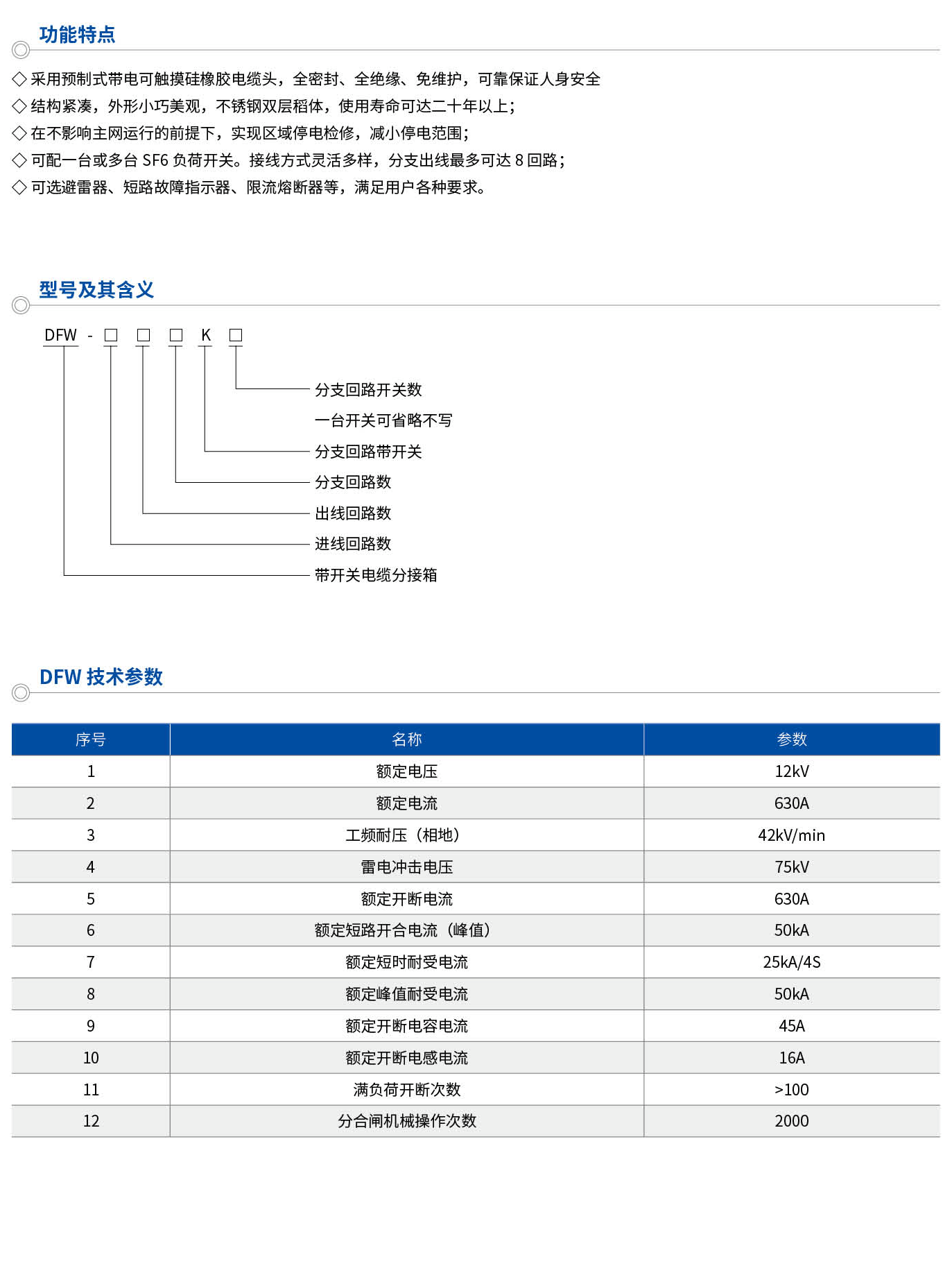 功能特點(diǎn):采用預(yù)制式帶電可觸摸硅橡膠電纜頭,全密封、全絕緣、免維護(hù),可靠保證人身安全。結(jié)構(gòu)緊湊,外形小巧美觀(guān),不銹鋼雙層稻體,使用壽命可達(dá)二十年以上;在不影響主網(wǎng)運(yùn)行的前提下,實(shí)現(xiàn)區(qū)域停電檢修,減小停電范圍;可配一臺(tái)或多臺(tái)SF6負(fù)荷開(kāi)關(guān)。接線(xiàn)方式靈活多樣,分支出線(xiàn)可達(dá)8回路;可選避雷器、短路故障指示器、限流熔斷器等,滿(mǎn)足用戶(hù)各種要求。